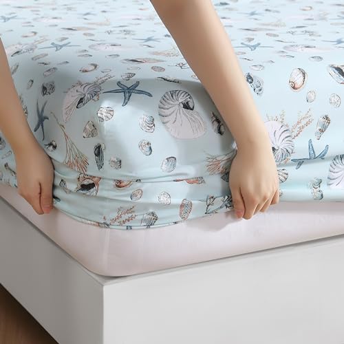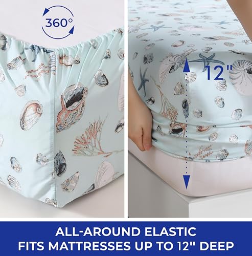 Beatrice Home Fashions Coastal Print Microfiber Sheet Set, Soft, Comfy, 12" Deep Pockets, Queen, Oceanside Sea