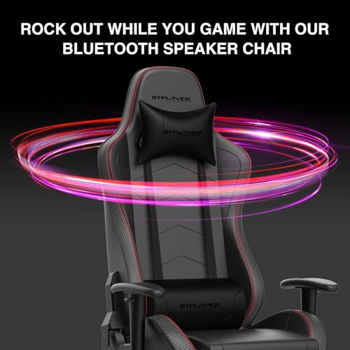 GTPLAYER Gaming Chair with Footrest Speakers Video Game Chair Bluetooth Music Heavy Duty Ergonomic Computer Office Desk Chair Red
