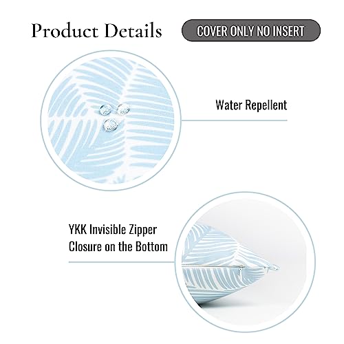 Hofdeco Premium Coastal Hampton Style Patio Indoor Outdoor Cushion Cover, Pillow Cover Only, 20''x20'' Water Resistant for Backyard, Couch, Baby Blue Palm Leaf