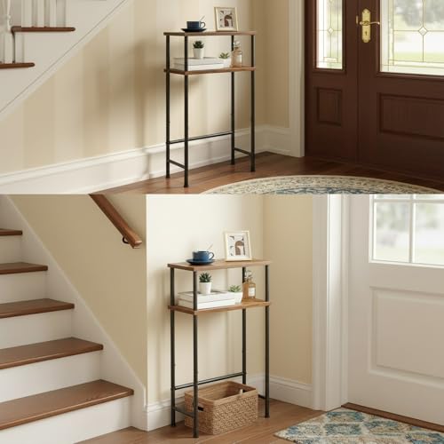 - Versatile Entryway Table: This 2 tier sofa table serves as an small entryway table for keys, mail and hallway lights, a narrow side table for books, magazines and drinks, or a display table with shelf for decor and plants. Meanwhile, it is also a versatile tall side table and narrow sofa table when you want to put it in your living room, meeting various home needs