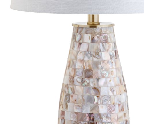 JONATHAN Y 28" Natural Mosaic Seashell Table Lamp, Coastal Contemporary Resin Lamp for Living Room Bedroom, White Linen Shade, Brass Gold Accents, LED Bulb Included JYL4005A