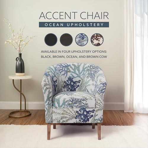Linon Stephen Oceanside Ivory and Blue Upholstered Coastal Club Chair