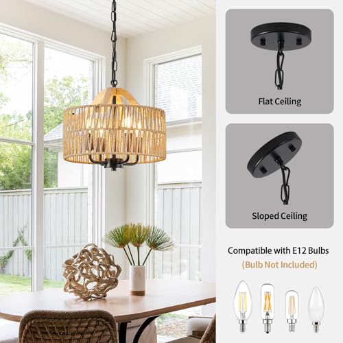 - 【Bulb Compatibility】The rattan chandelier has four E12 socket, each light with a maximum wattage of 40W(not included). Also fully dimmable when used with a dimmable bulb and compatible dimmer switch (not included) to create the perfect lighting ambiance for any occasion.